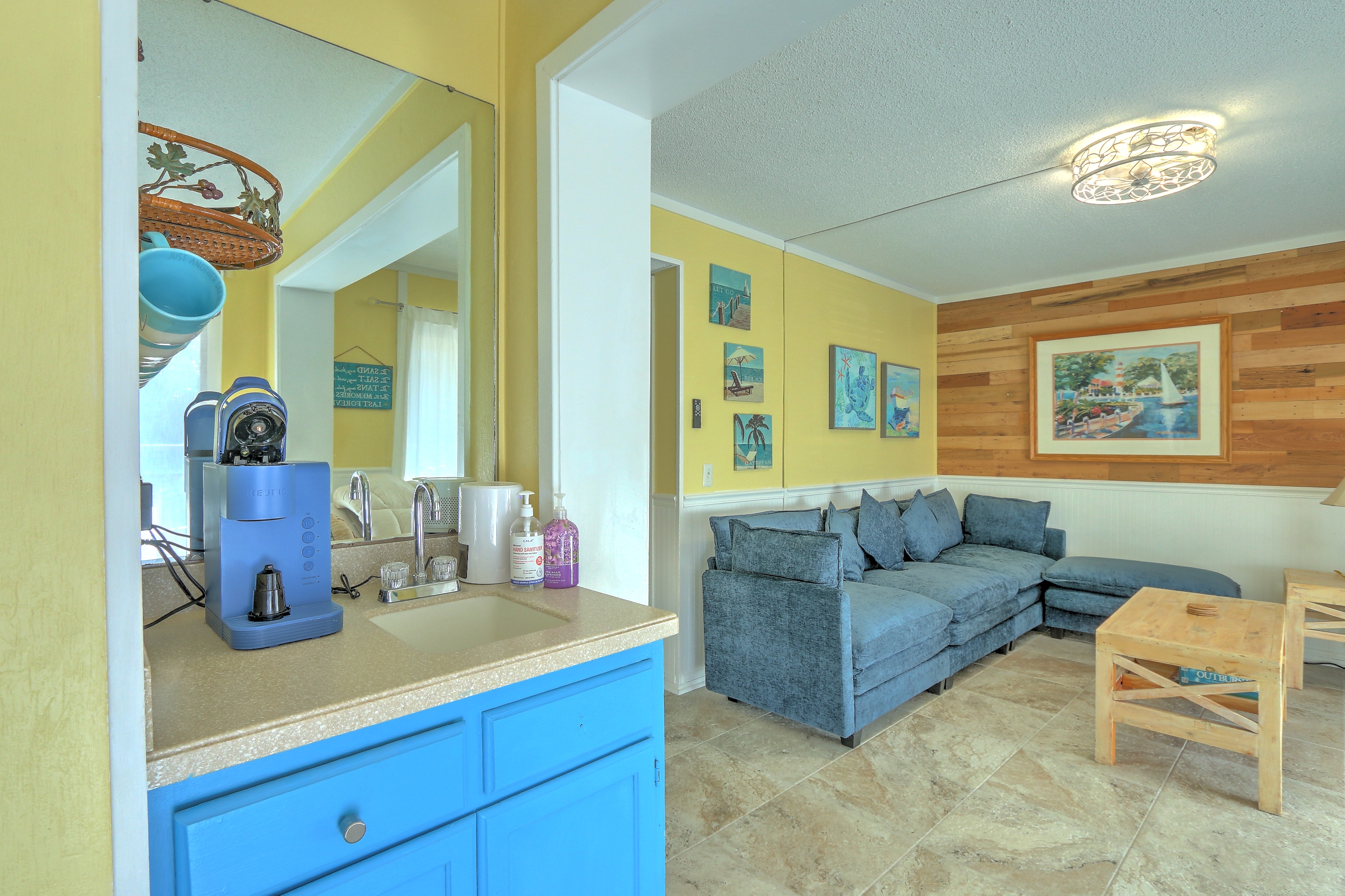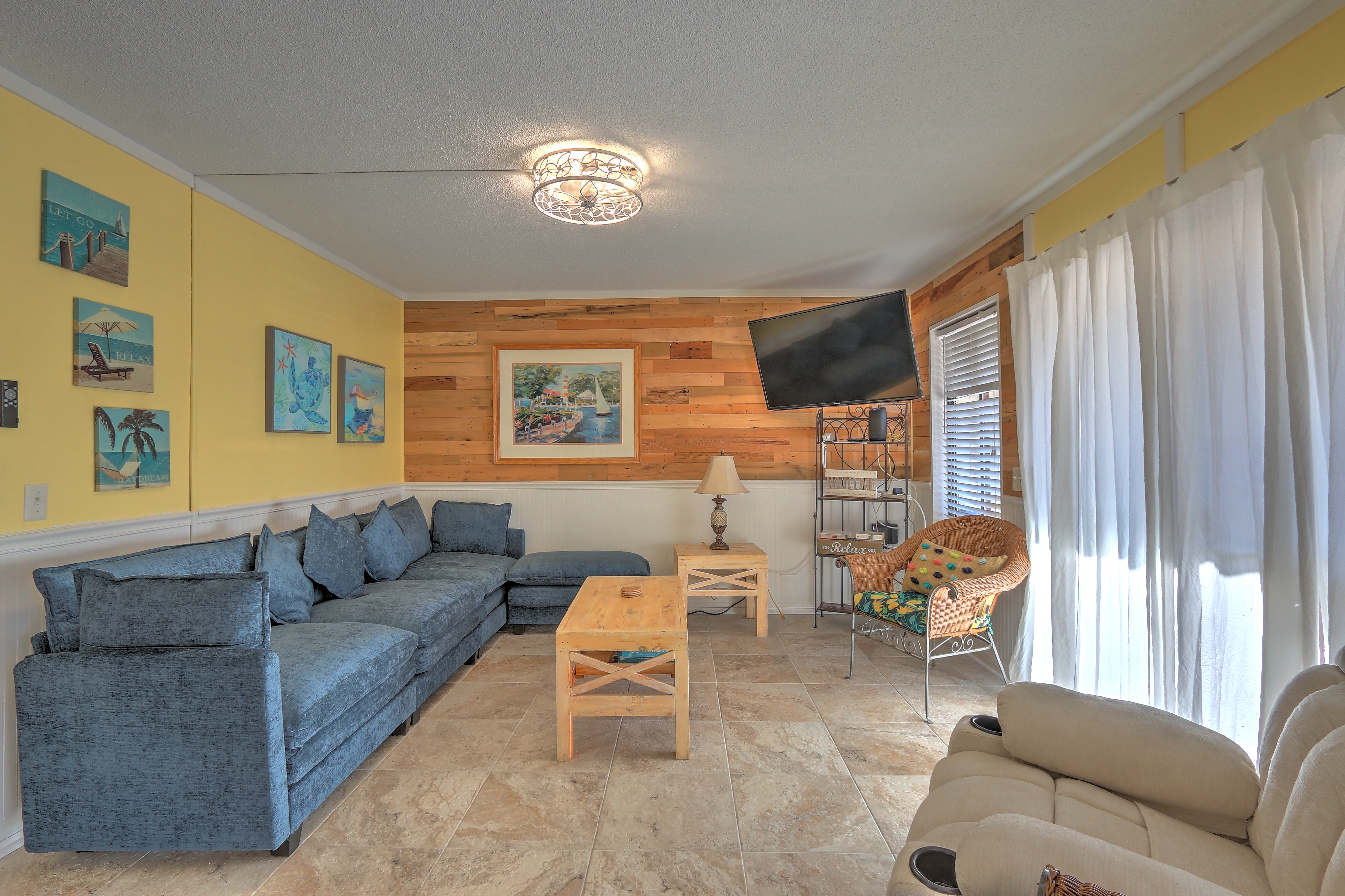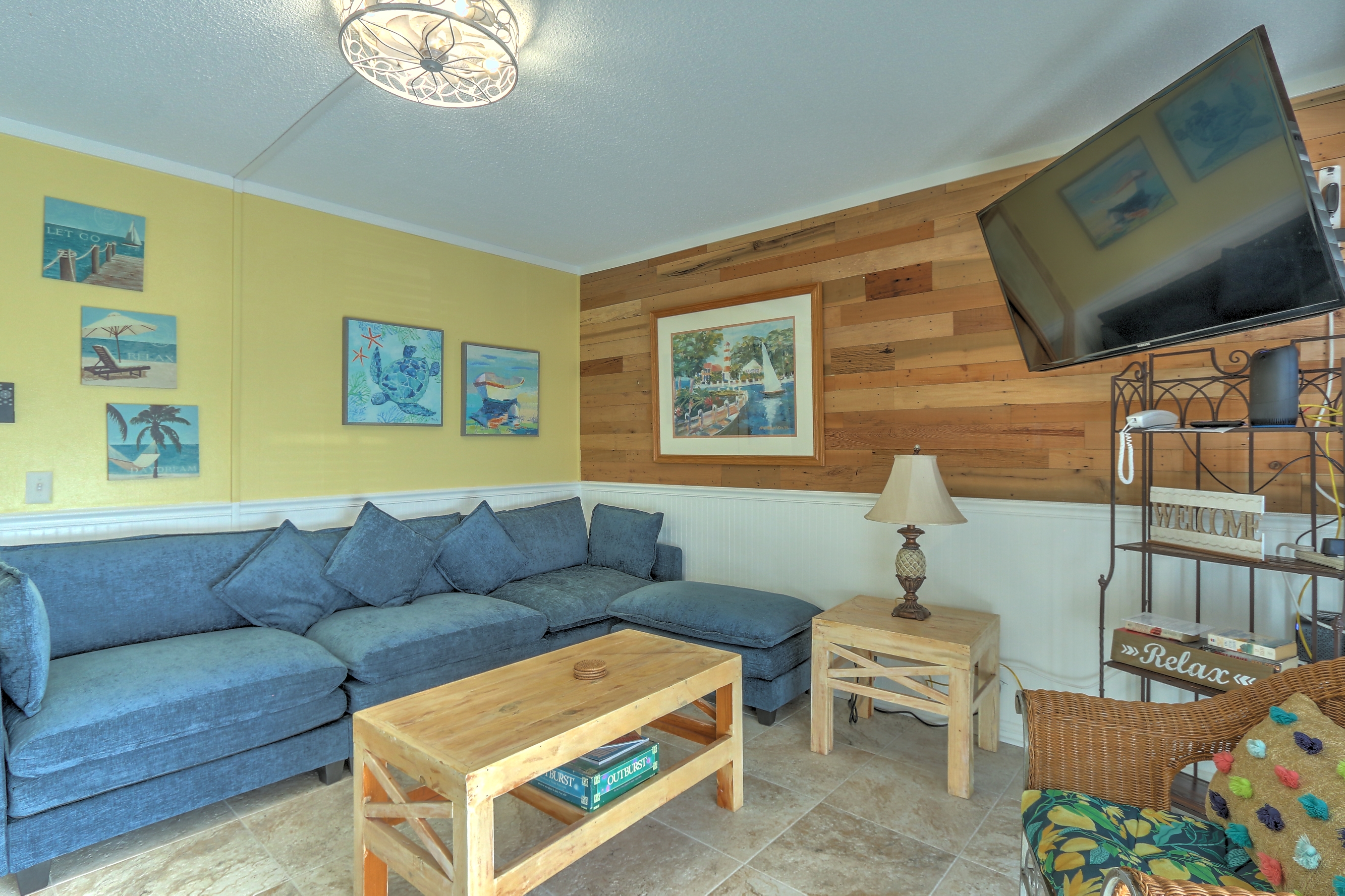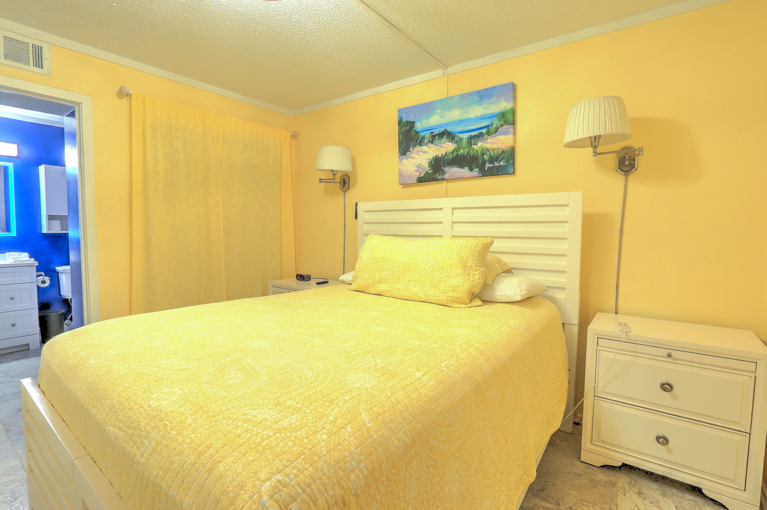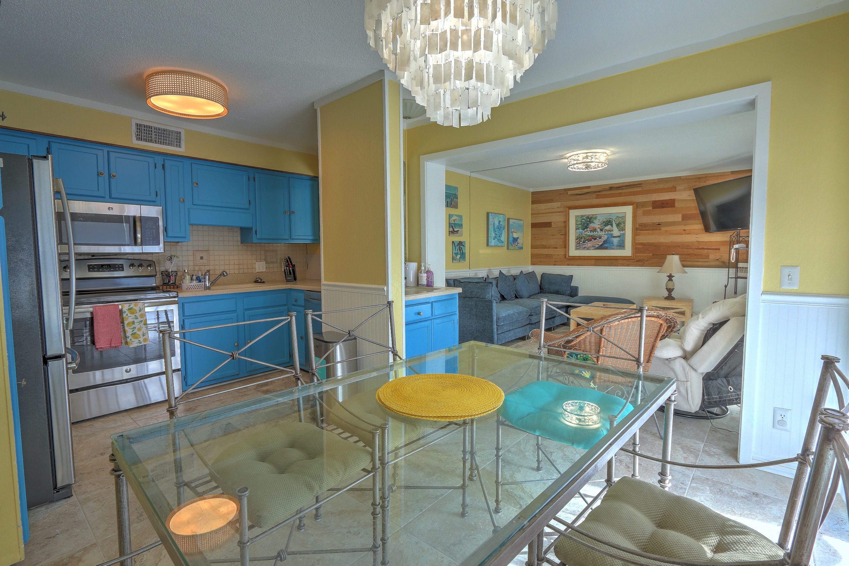 Great Location on this Beach Front Community. Pickle Ball,Tennis and several Restaurants on location plus many a short drive away. This Newly Remodeled 2 Bedroom Unit has been remodeled with All Stainless Appliances and 3 LED Smart TV's with ROKU Plus a Top Of the Line Adjustable Mattress in the Master Unit. The 2nd Bedroom has bunk beds with a Full size mattress and a twin mattress above Plus a Twin Trundle to pull out if needed. The den has a 50" LED Smart TV. Having 2 Bathrooms is great add on at the beach as well. A new tile floor plus all new light fixtures have been added as well.